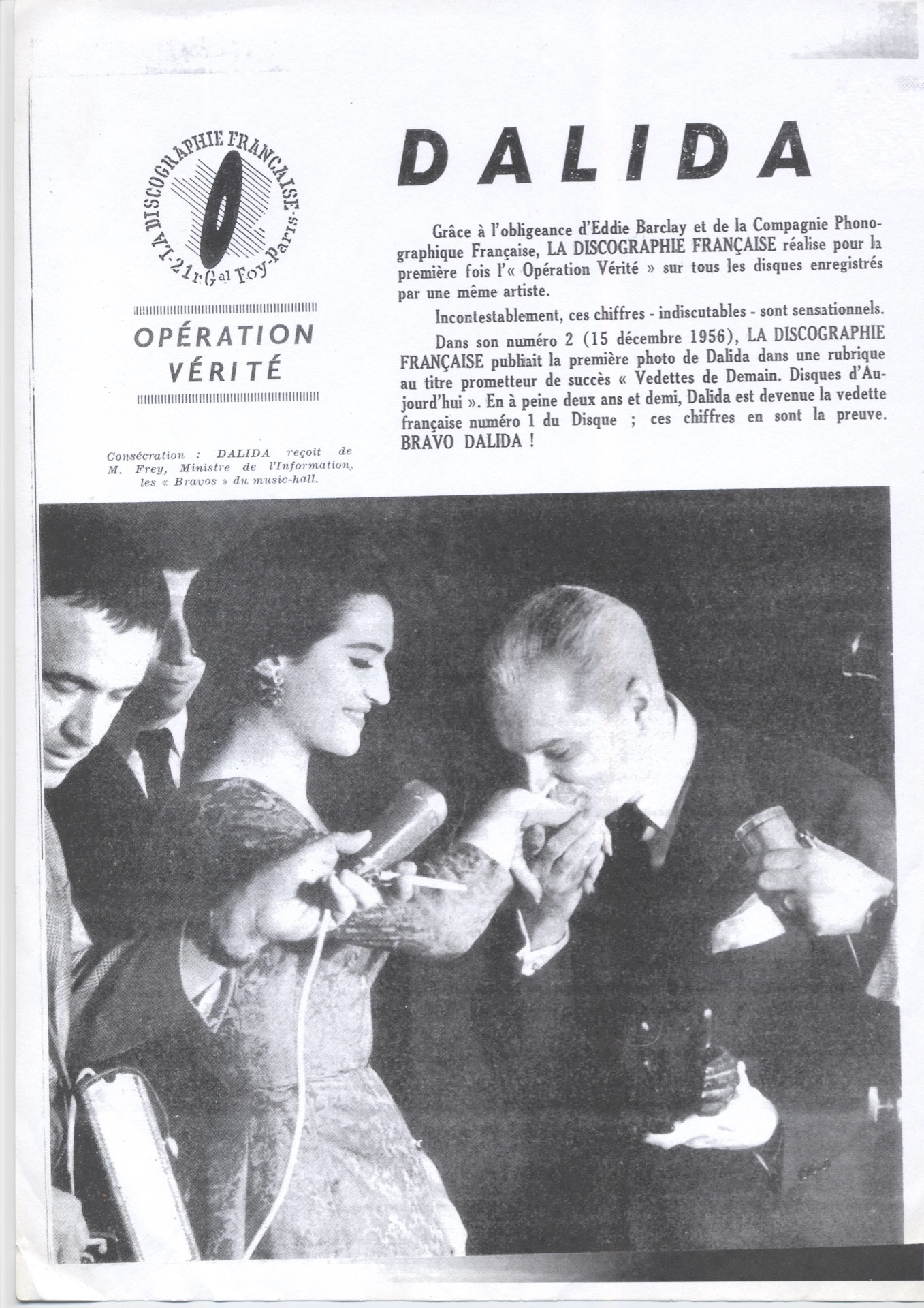 Durant les années 50 c'est la vogue des chanteuses à accent en France. Rina Ketty fut l'une des pionnières du genre dans les années 30 et 40 et fut évincée par la suite par Gloria Lasso à partir de 1954. Alors que la toute jeune chanteuse espagnole semble régner en maître absolu, une nouvelle voix commence à faire chavirer le coeur des français. En effet, c'est à la toute fin de l'année 1956 que les français entendent sur les ondes d'Europe N°1 une voix qui leur est alors inconnue. La station reçoit des appels d'auditeurs qui leur réclament le nom de cette interprète à l'accent chantant mais aussi la référence de son disque. Les standardistes de la radio les renseignent et une photo de DALIDA leur est envoyée pour qu'ils puissent mettre un visage sur la voix de cette artiste en herbe. Dès lors, Dalida entame modestement son entrée dans le paysage musical français.